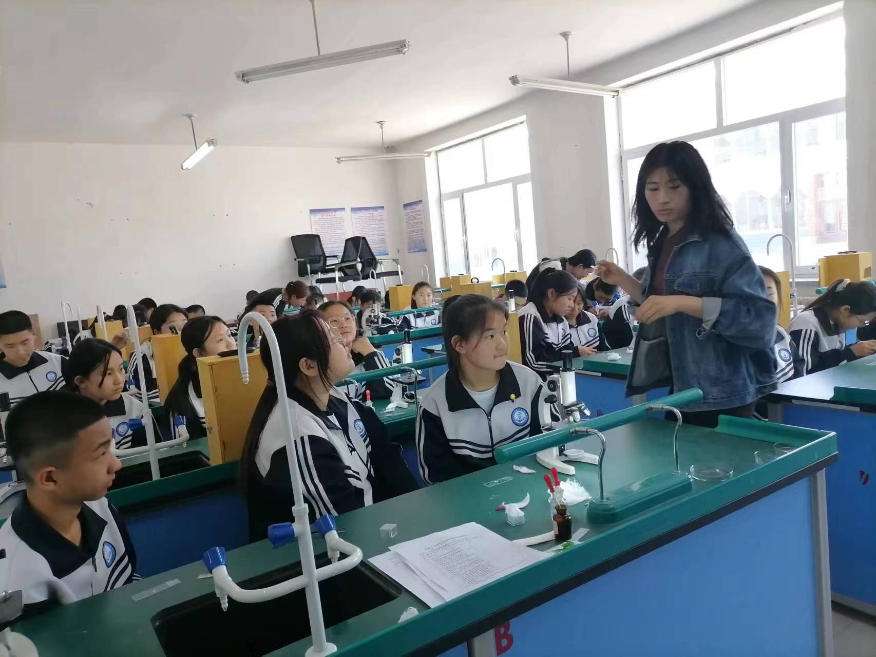 徐凤兰老师的指导下学生制作并观察洋葱鳞片叶表皮细胞临时装片