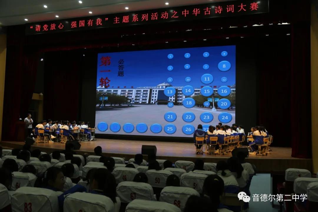 为了激发学生对中华优秀传统文化的兴趣和热爱,让古诗词浸润孩子们的心灵,陶冶高尚情操,丰富精神世界,10月15日下午,音德尔第二中学第二届“中华诗词大赛”在学校报告厅拉开了帷幕。